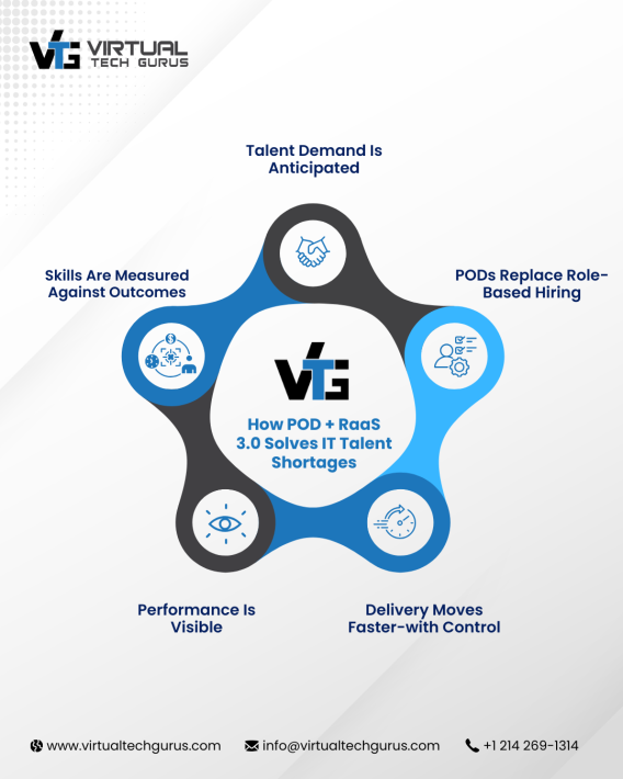 Talent shortages are here to stay, but delivery delays do not have to be. With POD-powered RaaS 3.0 from Virtual Tech Gurus, enterprises gain the speed of on-demand talent and the control of structured, outcome-focused delivery-without compromise.